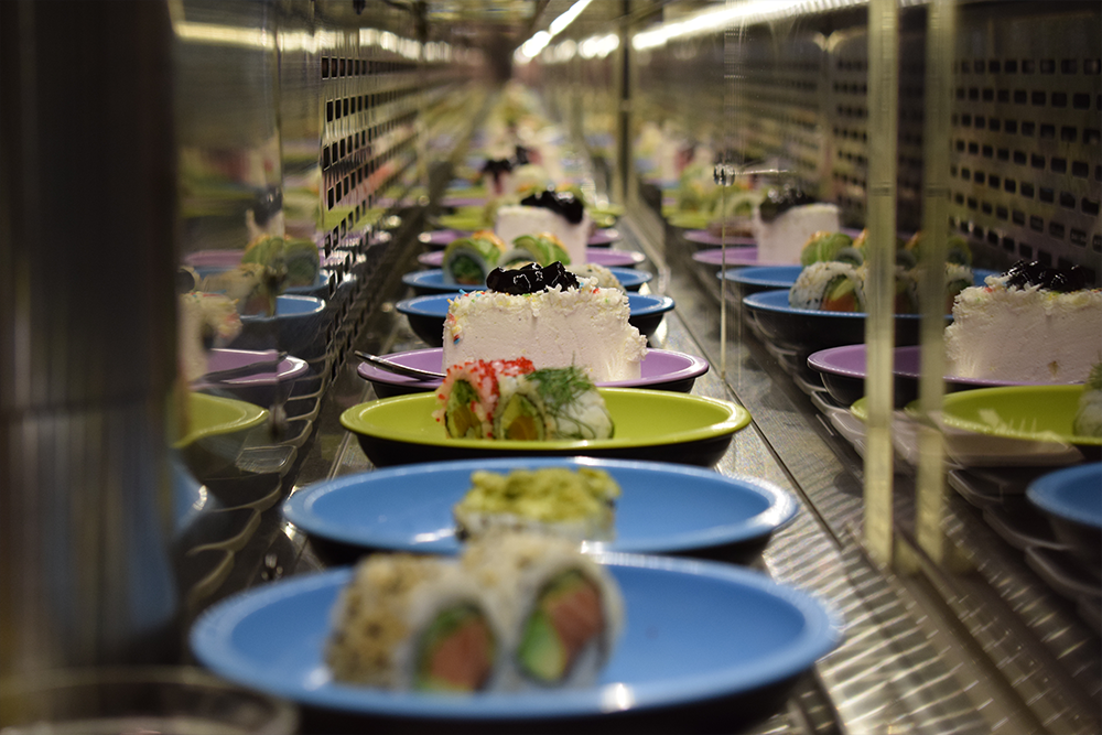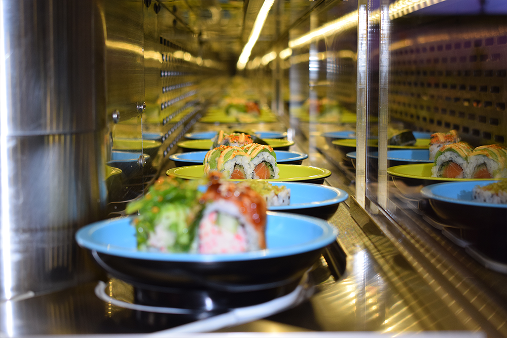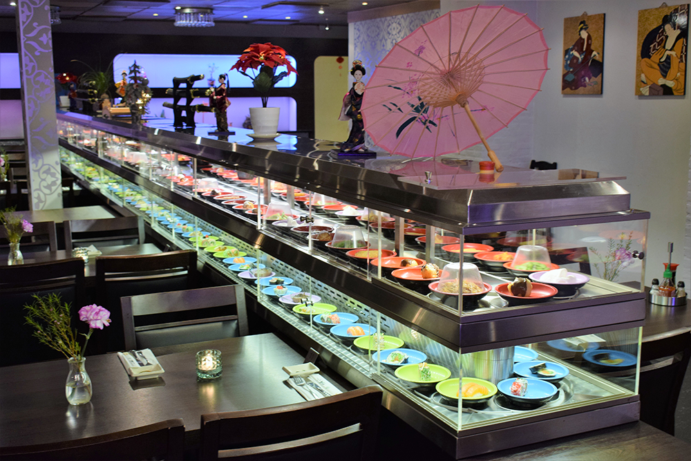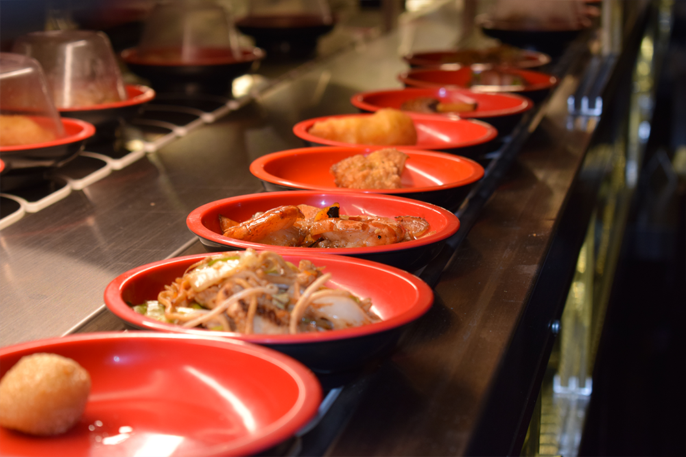 Oplev glæden ved running sushi med et kæmpe udvalg af sushi, varme retter, dessert og is